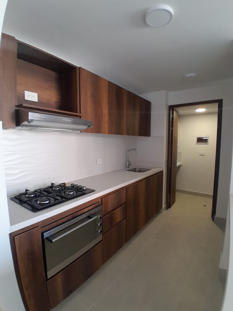 3 habitaciones,3 clósets y 1 vestier en la habitación principal,2 baños: uno privado en la alcoba principal y otro auxiliar,Balcón amplio,Cocina tipo americana, moderna y funcional,Estufa y calentador a gas,Zona de ropas independiente